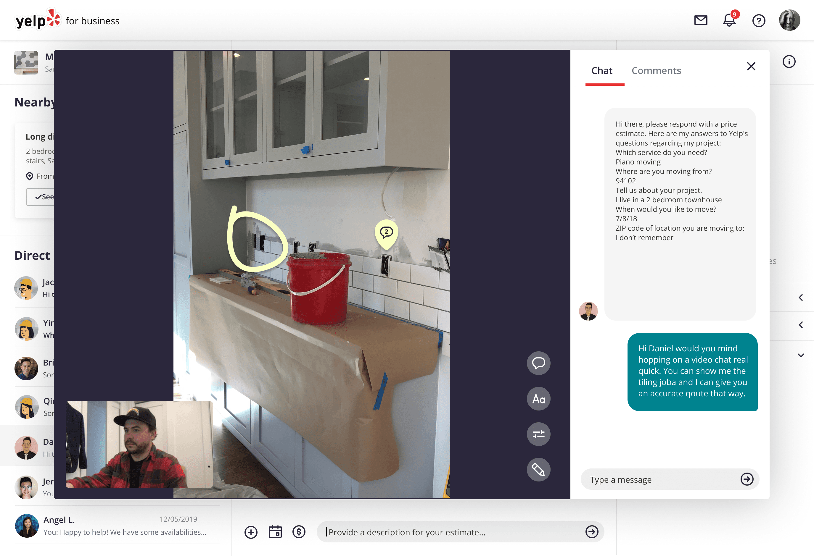 Yelp Virtual Consultations is a streamlined way to connect Yelp users with instant help from professionals via an interactive video chat.